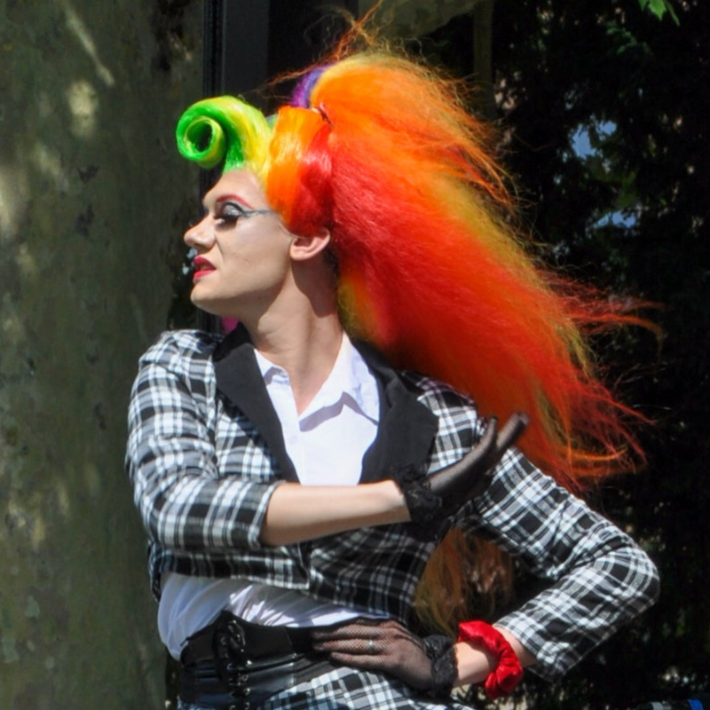 Copper Balayage Crimped Fluffy 80s Drag Half-Pony Wig